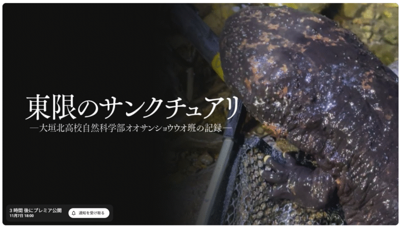 『東限のサンクチュアリ-大垣北高校自然科学部オオサンショウウオ班の記録-』が、期間限定でYouTube公開が決定しました!