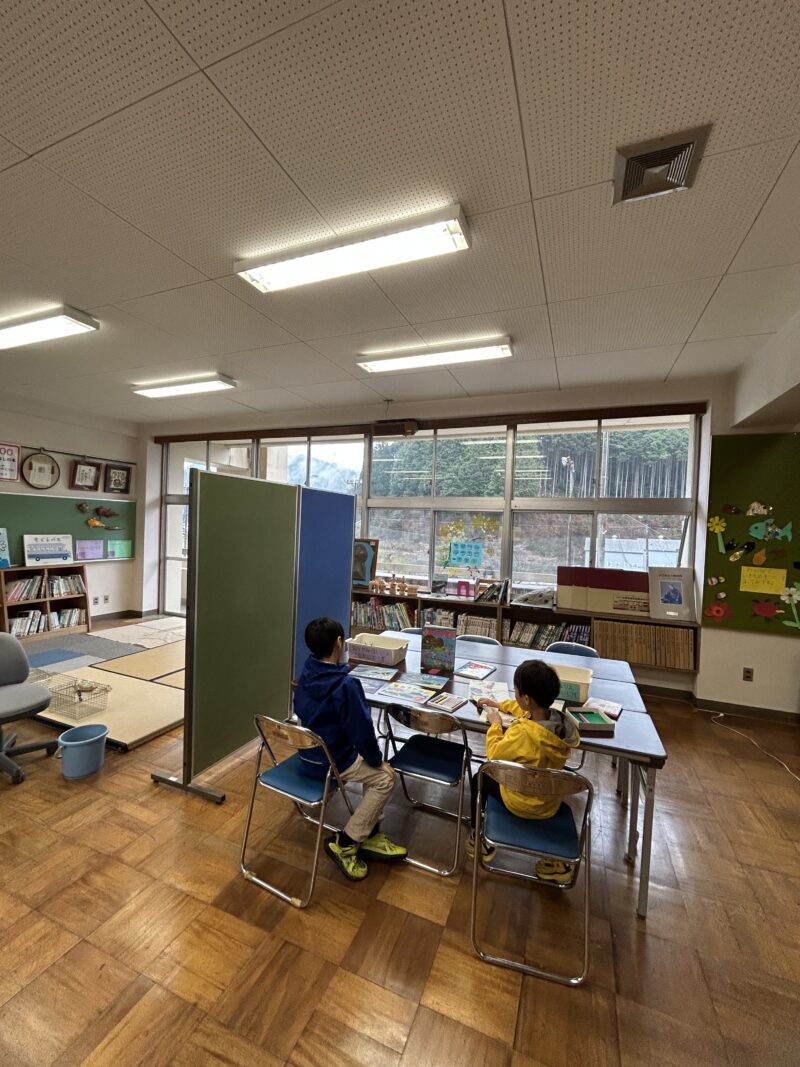 菅田集学校(旧菅田小学校)の図書室には、たくさんの生き物図鑑があります。