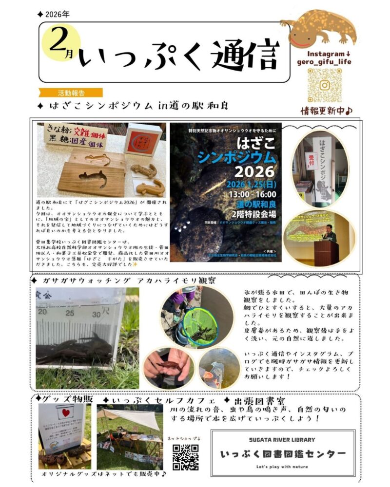 いっぷく図書図鑑センターでは、オオサンショウウオが生息する豊かな自然環境の菅田川で、体験型図書室として様々な活動をしています。