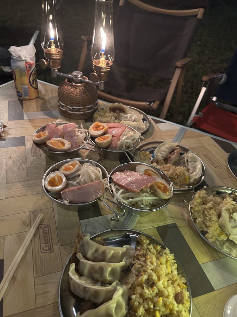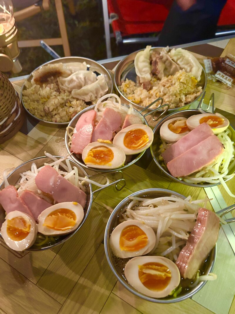 夜は、味噌ラーメンで体を温めました。これまたベテランキャンパーのお友達特製の煮卵とチャーシューが美味しかったです!