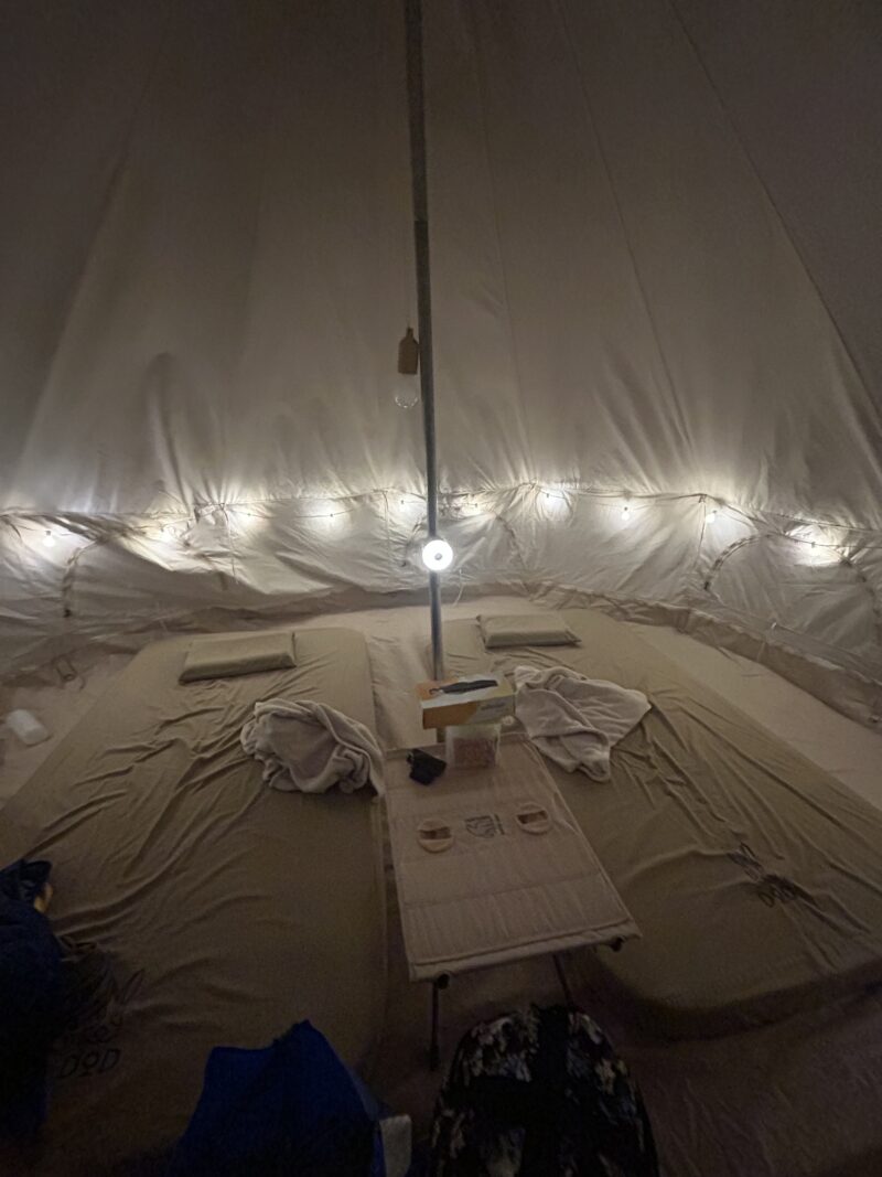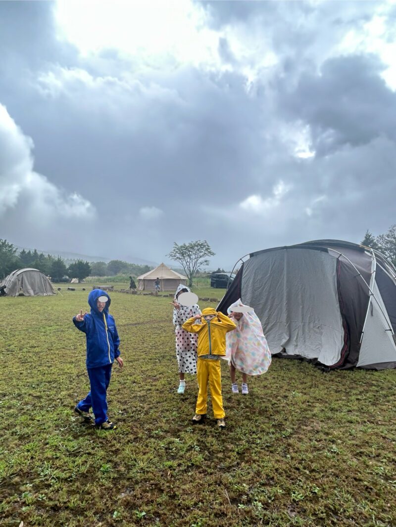 2泊3日、初日の設営時は雨が降っていて、風がとても強かったので設営に苦戦しました。