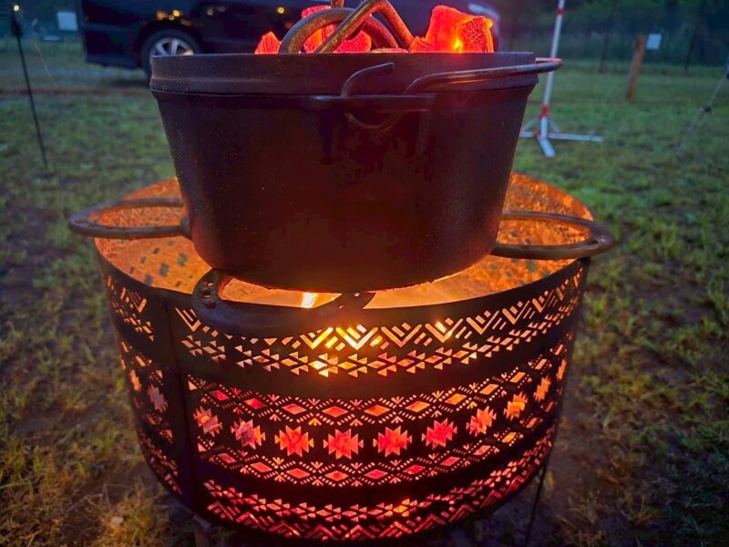 夜は少し冷えました。FUTURE FOX ナバホ柄焚き火台
